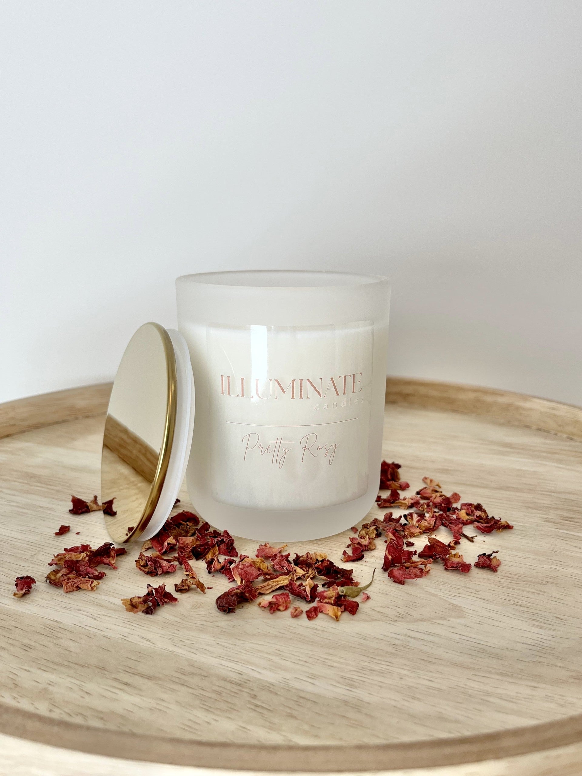 A fresh take on a floral classic, Pretty Rosy is natural, bright, and softly romantic. Opening with bergamot and red berries, it unfolds into delicate rose and a touch of clove leaf spice. The fragrance settles beautifully into cedarwood and amyris, creating a balanced blend of floral and earthy notes. Poured into frosted glass with a luxe clear label and gold lid, this 300g candle is made with 100% soy wax, natural fragrance oils, and cotton wicks for a clean burn you can feel good about.