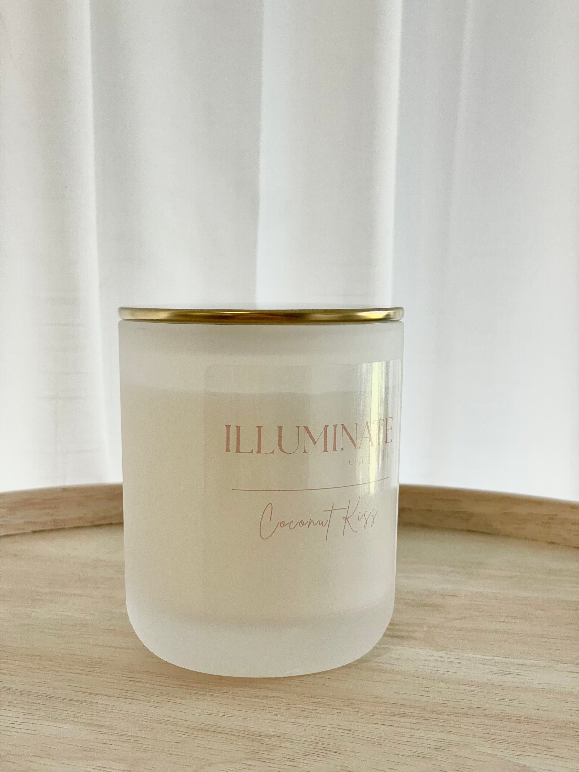 A fresh and sun kissed blend, Coconut Kiss is warm, bright, and effortlessly summery. Opening with a burst of zesty lime, it melts into creamy coconut and smooth vanilla, creating a soft, tropical sweetness that feels both uplifting and comforting. The fragrance settles into a gentle, lingering warmth that fills your space without overpowering it. Poured into frosted glass with a luxe clear label and gold lid, this 300g candle is made with 100% soy wax, natural fragrance oils, and cotton wicks for a clean burn you can feel good about.